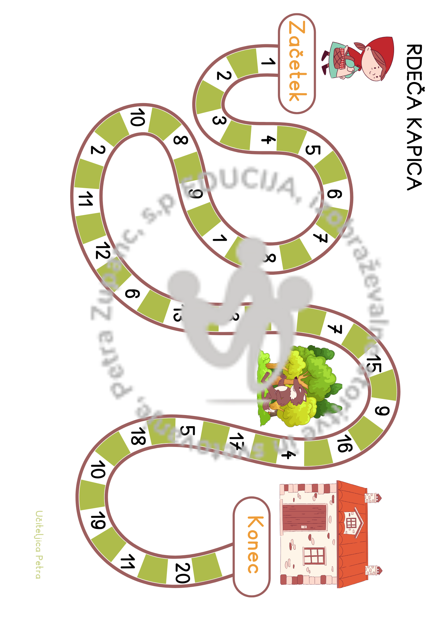 • igralne predloge za pravljice Rdeča kapica, Sneguljčica, Hvaležni medved, Pod medvedovim dežnikom, Zlata ptica, Petre Klepec in pripadajoča vprašanja,