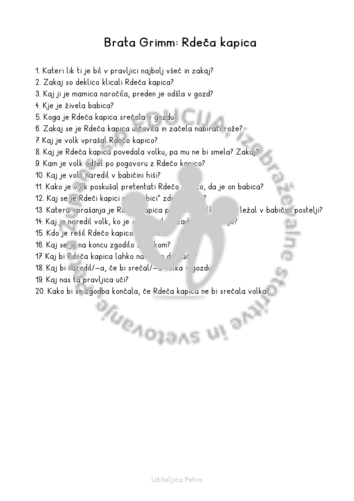 • preverjajo razumevanje slišane ali prebrane pravljice,