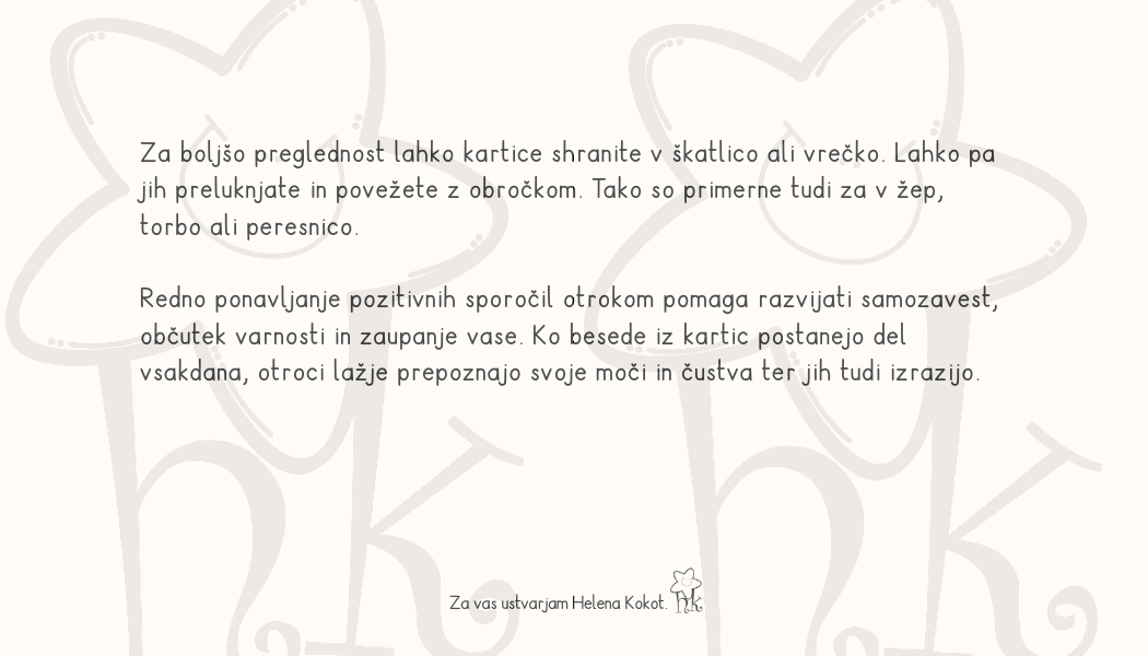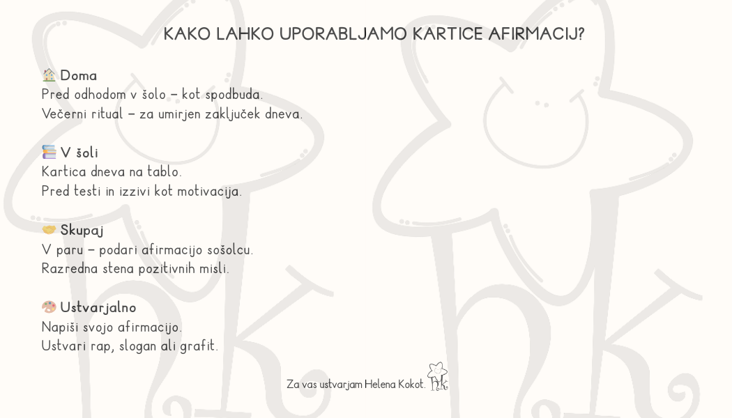Kartice z afirmacijami spodbujajo pozitivno samopodobo, samozavest, pogum in čustveno pismenost – doma in v šoli.
