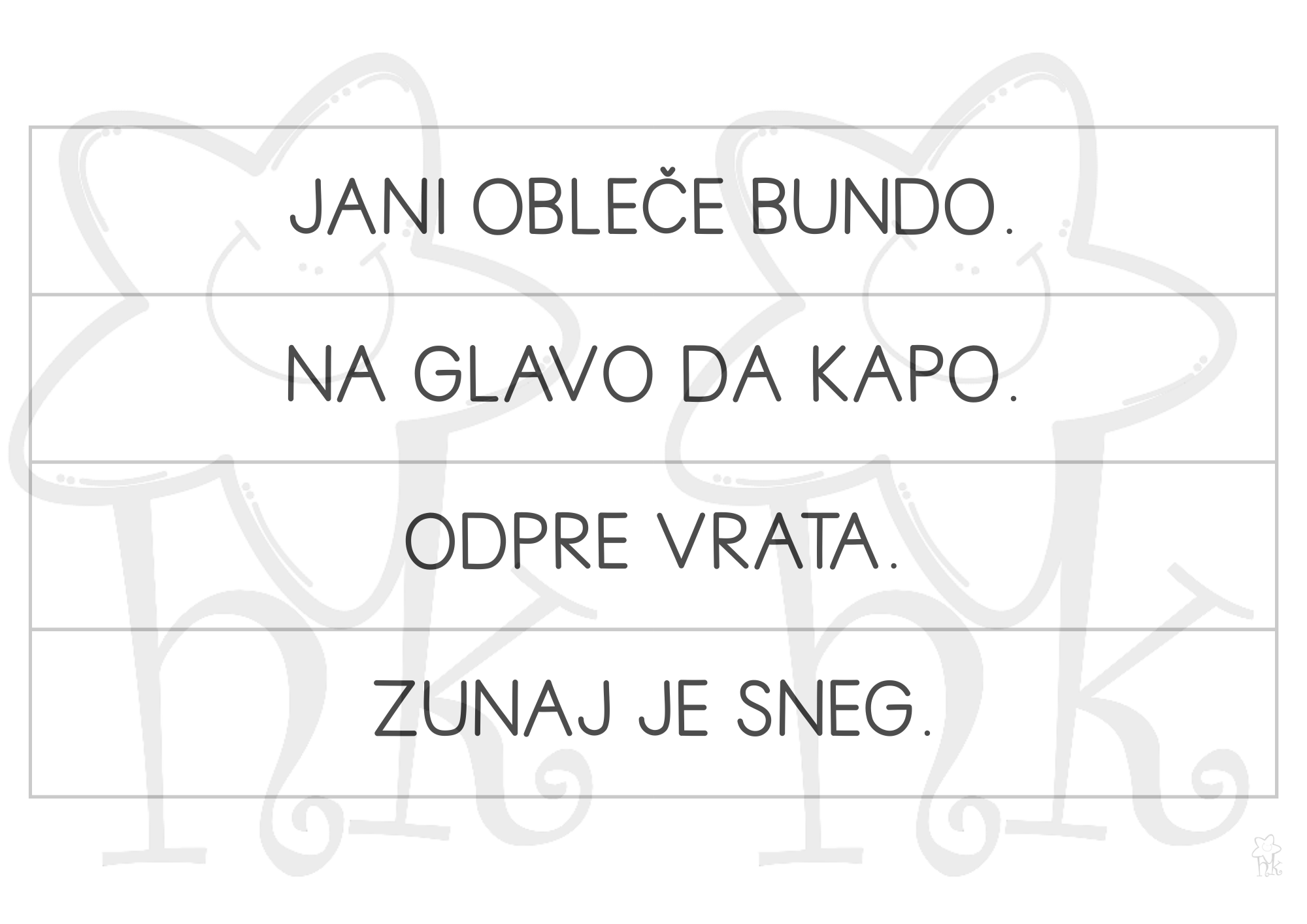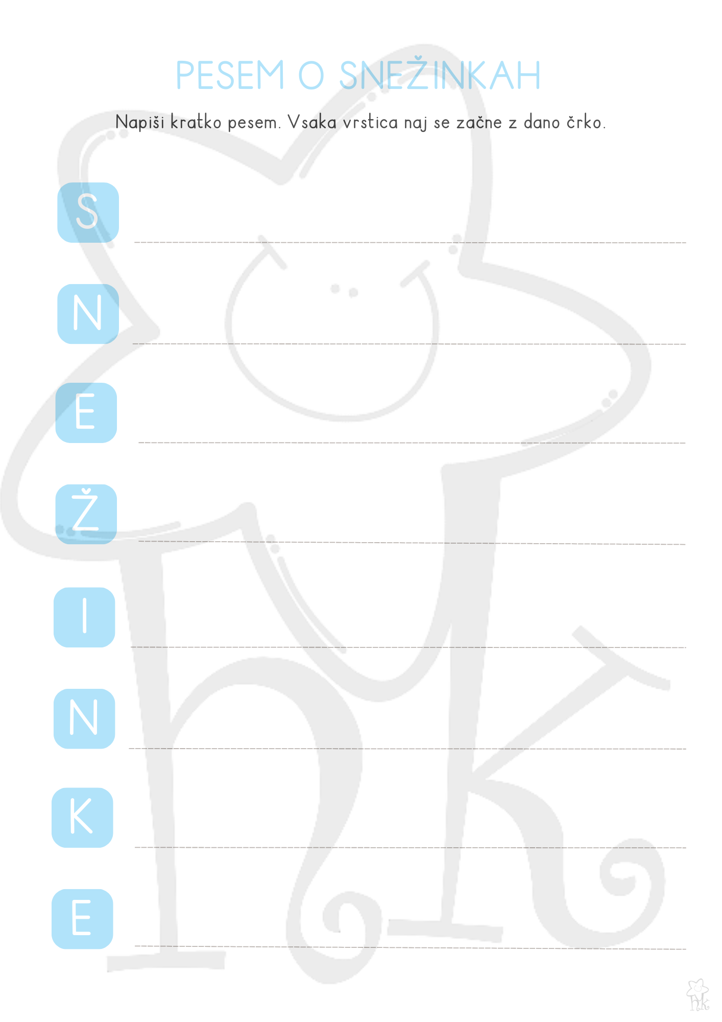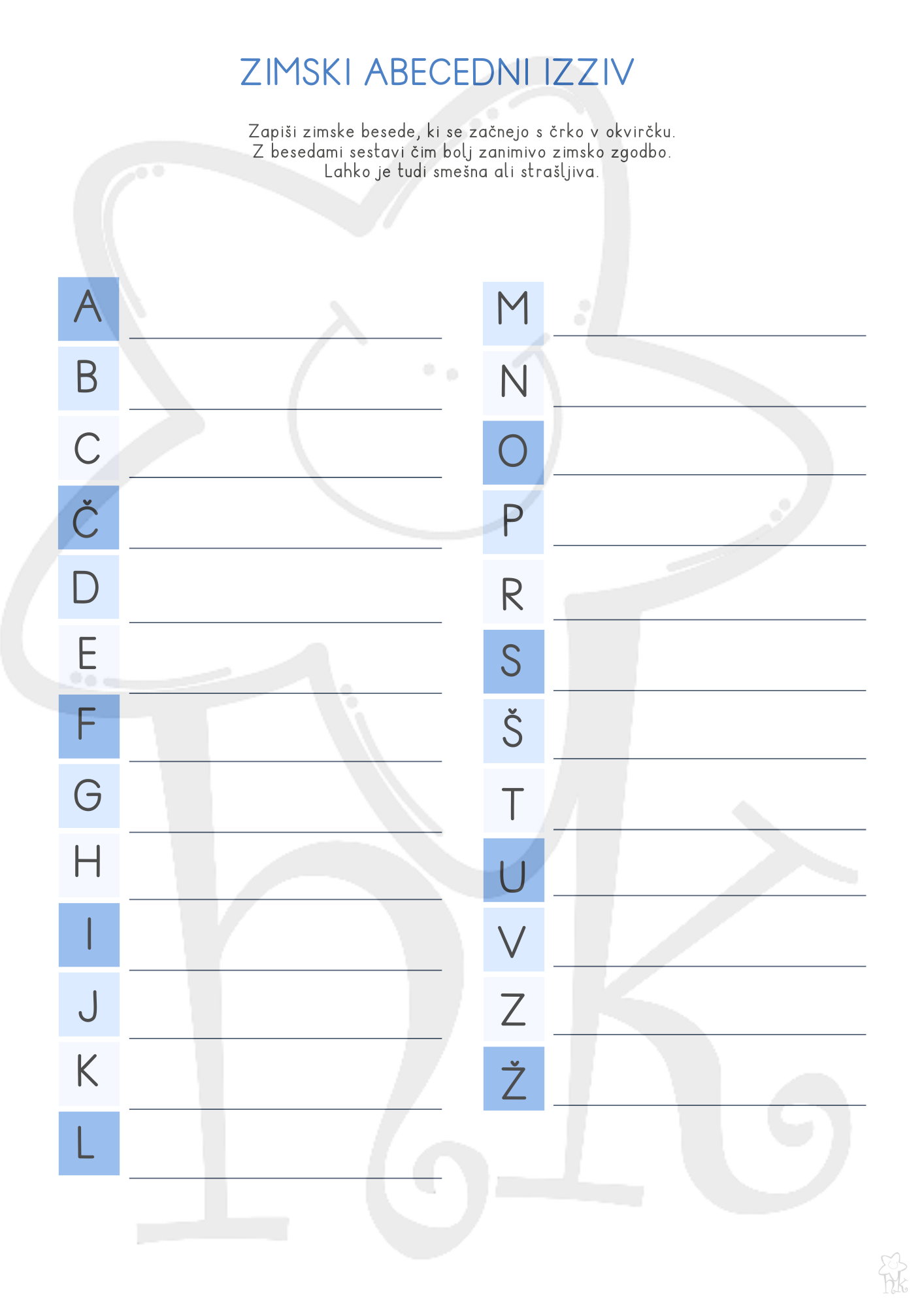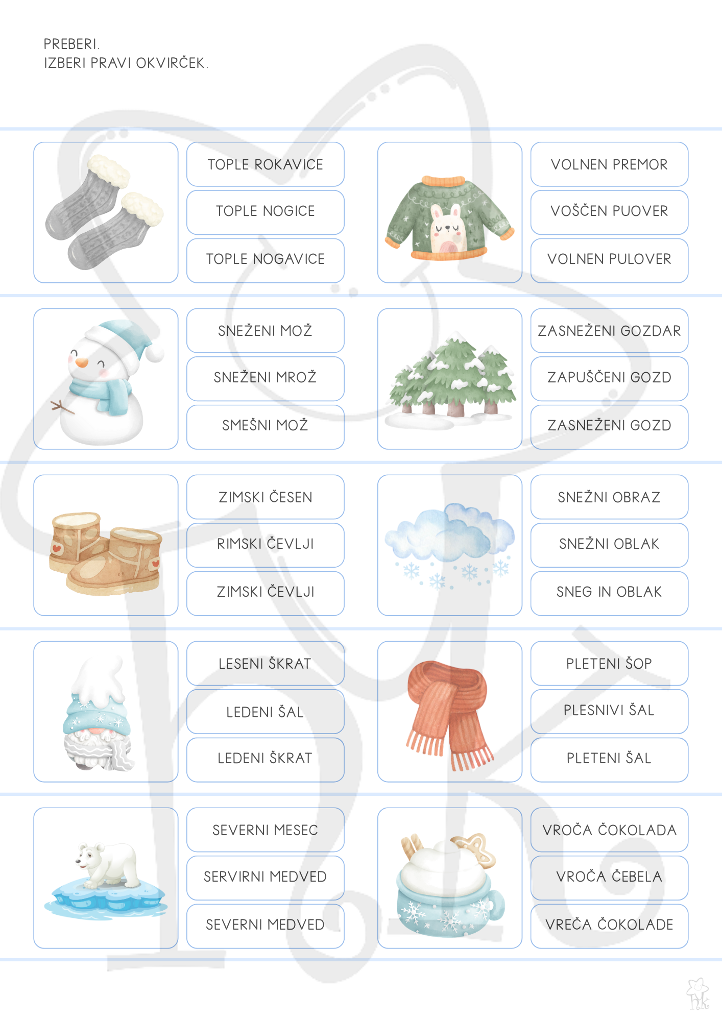 • Zimsko branje – naloge za branje z razumevanjem, povezovanje slike in besede ter širjenje besedišča.