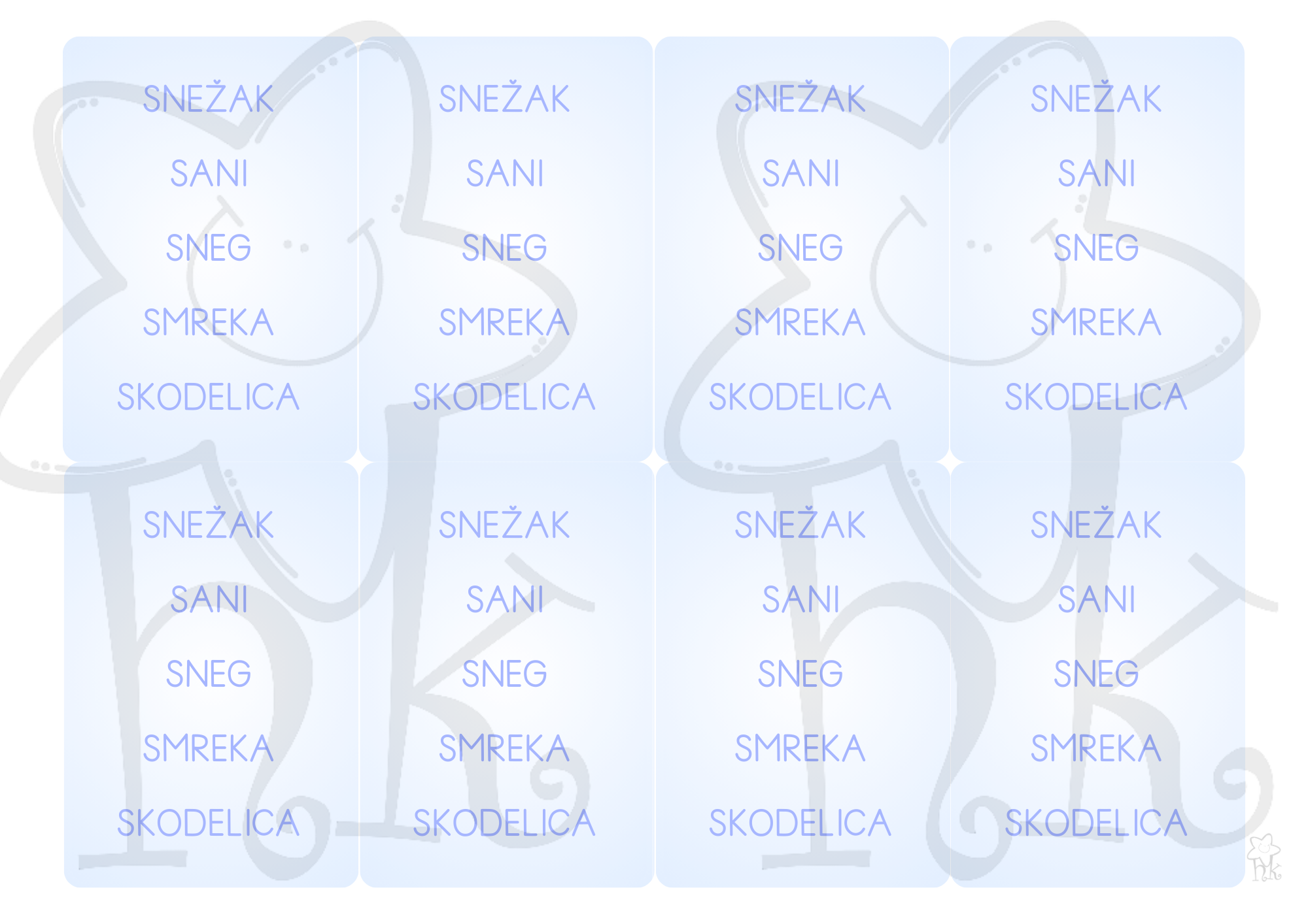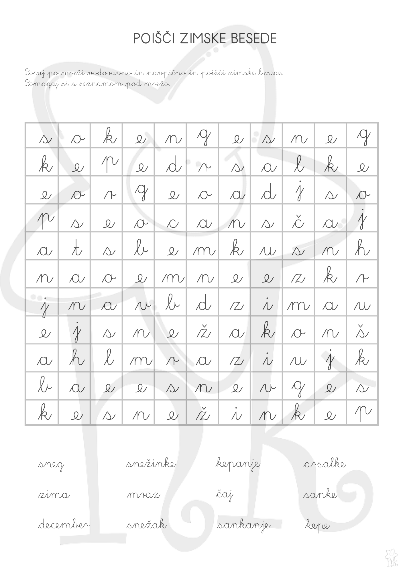 • Poišči zimske besede –naloge iskanja in branja zimskih pojmov.